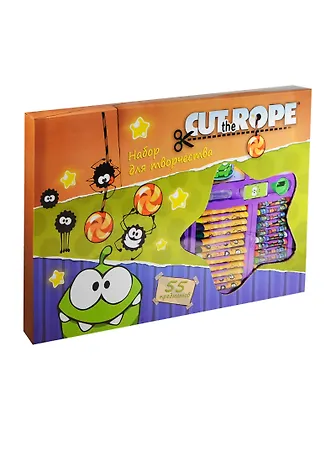 Набор для дет.творч. 55 предметов (фломастеры, карандаши, воск.мелки, клей, ластик, точилка, блокнот), к/к, Cut the Rope