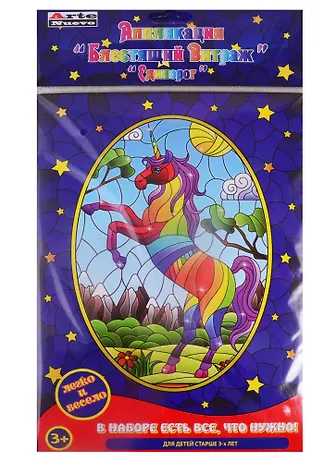 Набор для детского творчества Arte Nuevo Аппликация "Блестящий витраж" "Единорог" DT-1040-7V