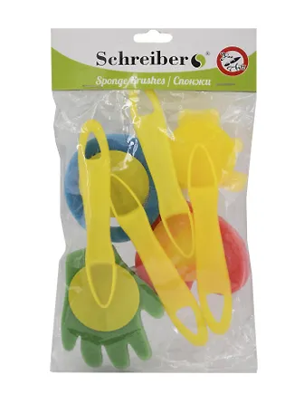 Набор для детского творчества, Набор спонжей художественных поролоновых с пластиковыми рукоятками, 4шт., 13*19см