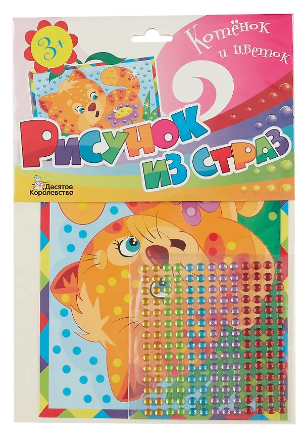 Покупаю такие наборы детского творчества для племянници, ей они очень нравятся. На этот раз выбор пал на этот рисунок "Котенок и цветок" так как есть интерес к котикам. Сам рисунок четкий и красочный и на нем кружки для приклеивания страз. Сами стразы имеют клеевую основу так что клей не нужен. Стразы не слишком мелкие что удобно их держать руками и приклеивать на саму картину, где они и должны быть. Клеим не хаотично а по цветам, в начале находим все красные и так далее. Эти наборы увлекательные и помогают в изучении цветов.