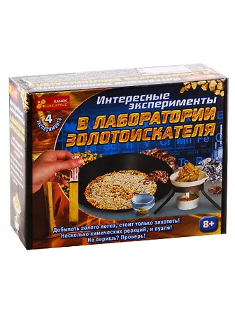 Стать алхимиком за пару часов и превратить обычные предметы в золото не только реально, но и легко. В наборе лаборатории золотоискателя есть все необходимое для проведения экспериментов, а еще много интересных фактов о золоте. Всего лишь за пару минут можно научиться отмывать золото из обычного песка, увидеть настоящий золотой звездопад, превратить медь в золото. Набор золотоискателя станет отличным подарком для юных исследователей и любителей изучать новое, открывать научные тайны. Набор содержит 4 интересных опыта по химии, Отмываем золото, Золотой звездопад, Посеребрим медь и Медь превращается в золото.