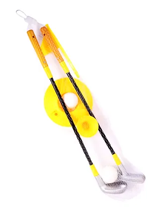 Этот яркий набор предназначен для игры в гольф и включает 7 предметов: 2 клюшки длиной 42 см, 2 мячика диаметром 4 см, флажок, лунку и подставку для мяча.