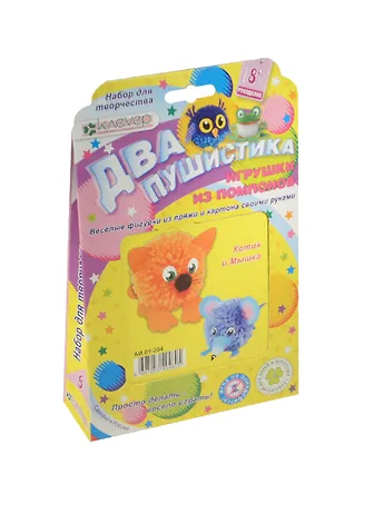 Набор "Два пушистика. Котик и мышка" научит ребёнка старше 8 лет изготавливать пушистые помпоны из цветной пряжи на шаблонах. Останется только вклеить картонные детали - ушки, носик и лапки, наклеить глазки-самоклейки, помпон-носик и усики из проволоки - и весёлые игрушки оживут!