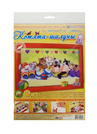 Набор для изгот. картины Котята-шалуны (АБ 24-516) (21х30см) (35дет.+рамка+объемный скотч) (Объемная аппликация) (8+) (упаковка)