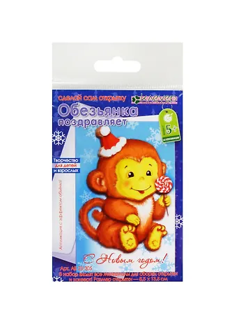 Набор для изгот. открытки Обезьянка поздравляет (АБ 23-305) (8,5х13,5см) (5+) (упаковка)