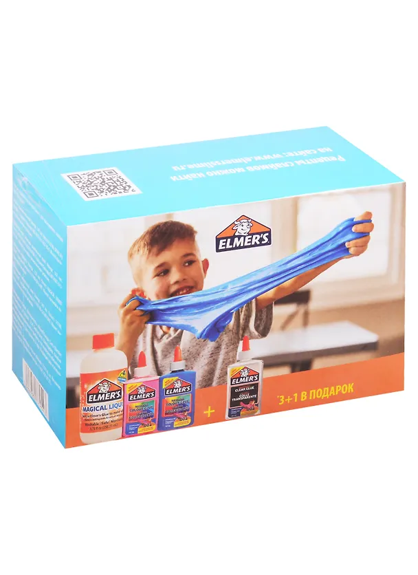 Набор подарочный Elmers для изготовления слаймов. В состав набора входят: Активатор для слаймов "Magic Liquid" 258мл., Клей канцелярский для слаймов "Colour Glue" 147мл. розовый полупрозрачный, Клей канцелярский для слаймов "Colour Glue" 147мл. синий непрозрачный, Клей канцелярский для слаймов "Clear Glue" 147мл. бесцветный прозрачный