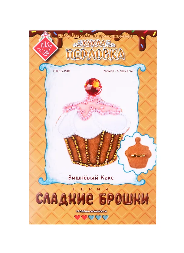 Набор для изготовления текстильной игрушки серия Сладкие брошки ВИШНЕВЫЙ КЕКС