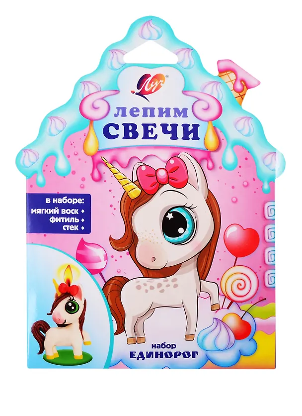 Довольно бюджетный творческий набор по лепке свечей, в наборе только воск и стек (ну и фитиль конечно),то есть ни каких дополнительных украшений нет. Но от этого набор не перестал быть интересным, лепить свечу было весело, а полученный результат порадовал ребенка. Лепить из воска вчечу не сложно, ребенок однозначно справится сам, главное четко следовать инструкции.