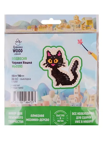 Набор для объемного творчества "Гранни Wood" Алмазная мозаика Подвеска Черная кошка (Wp0193) (96х95) (упаковка)