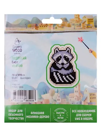 Набор для объемного творчества "Гранни Wood" Алмазная мозаика Подвеска Енот (Wp0399) (79х109) (упаковка)