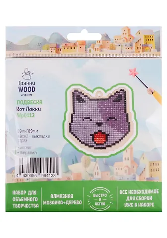 Набор для объемного творчества "Гранни Wood" Алмазная мозаика Подвеска Кот Лакки (Wp0112) (89х89) (упаковка)