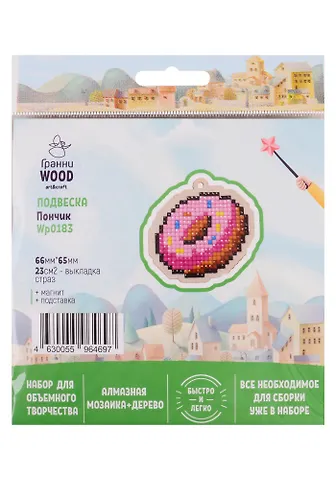 Набор для объемного творчества "Гранни Wood" Алмазная мозаика Подвеска Пончик (Wp0183) (66х65) (упаковка)