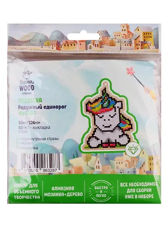 Набор для объемного творчества "Гранни Wood" Алмазная мозаика Подвеска Радужный единорог (Wp0293) (96х126) (упаковка)