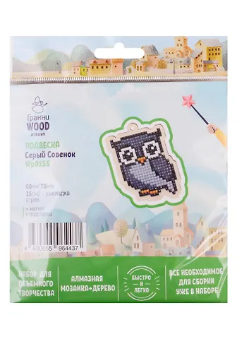 Набор для объемного творчества "Гранни Wood" Алмазная мозаика Подвеска Серый совенок (Wp0155) (60х78) (упаковка)
