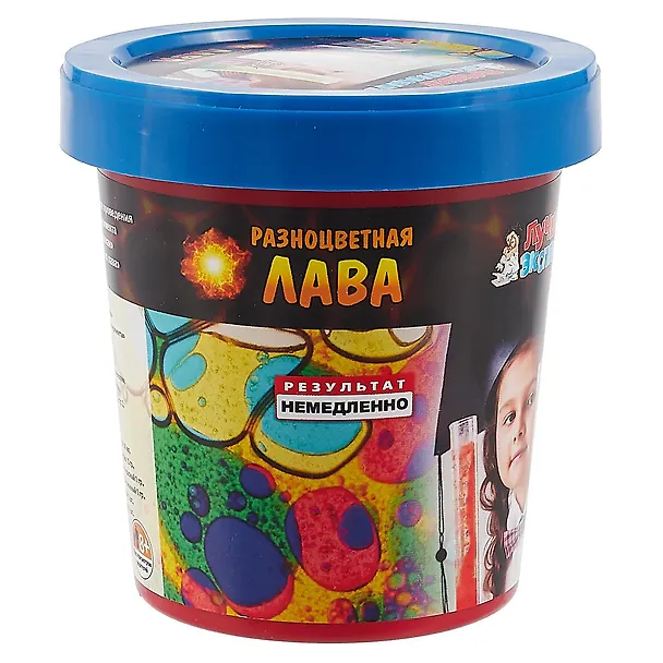 В компактных наборах серии "Лучшие эксперименты", результат эксперимента ребенок видит практически немедленно. Опыт не требует сложной предварительной подготовки, а сам набор содержит все необходимые компоненты для того, чтобы выполнить эксперимент под названием "Бурлящая лава" с двумя разными красителями. В стакане на границе двух жидкостей происходит бурная химическая реакция, результат которой похож на извержение подводного вулкана с разноцветными пузырьками. Компоненты набора безопасны.Состав: кислота уксусная 8%, сода пищевая, красители, стекляная банка 50 мл