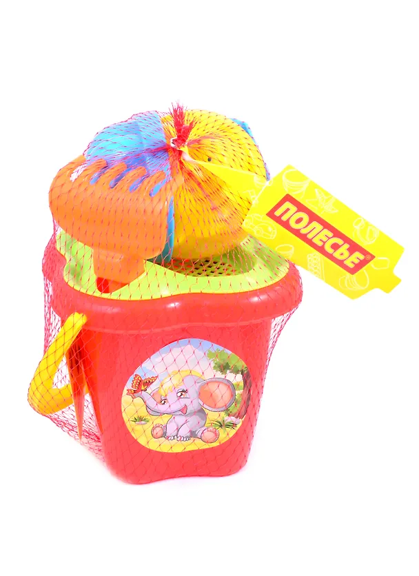 Яркий набор для игры с песком от компании Полесье. Состоит из ведерка с ситом, граблей, лопатки и двух разных формочек. Изготовлен из прочного гипоаллергенного пластика. Можно использовать на пляже, в саду или в песочнице.