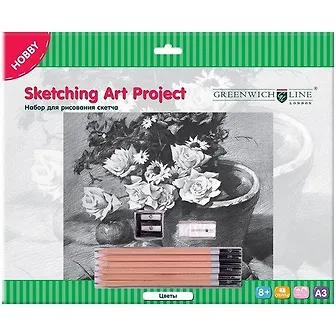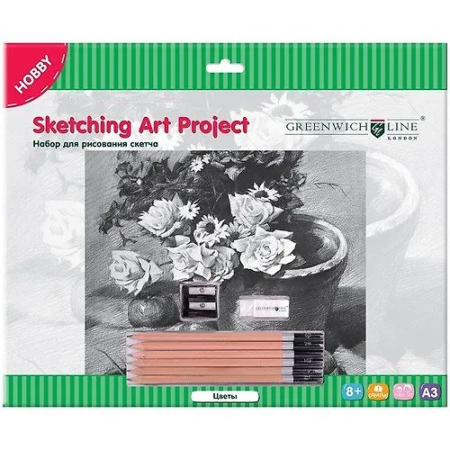 Набор для рисования скетча, Greenwich Line Цветы , A3, карандаши, ластик, точилка, картон