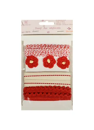 Набор для ручного творчества: шнур- 9,14 метров; цветок - 3 штуки; тесьма - 2 вида по 1,83 метра (цвет - красный).