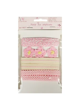 Набор для ручн. творч. (R877) (шнур/9,14м+цветок/3шт+тесьма/2в.х1,83м) (розовый) (Рукоделие) (упаковка)