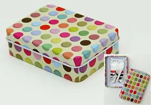 Набор для рукоделия "Светлый горох" арт.40608 (9,5*7*3см, в шкатулке из черного металла (набор швейных ниток (5 цветов) из 100% полиэстера на бумажной основе, игла ручная из высокоуглеродистой стали в футляре из полиэфирной смолы - 2шт, английская булавка из высокоуглеродистой стали - 1шт, пуговиц / 9,5*7*3 арт.40608