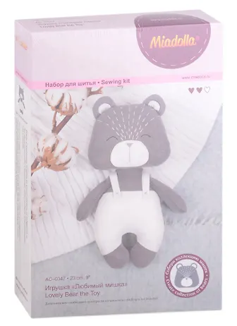 В набор входят все необходимые материалы кроме наполнителя: ткань, нитки, игла, выкройка, подробная инструкция с картинками.