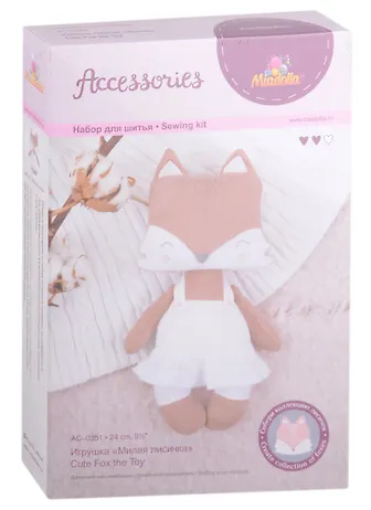 В набор входят все необходимые материалы кроме наполнителя: ткань, нитки, игла, выкройка, подробная инструкция с картинками.