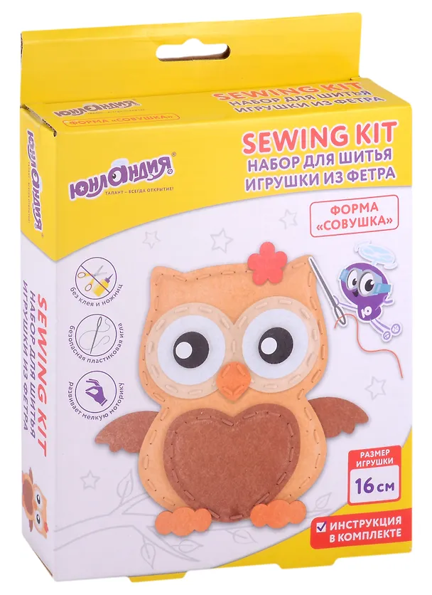 Совсем маленьким придется помогать, конечно, особенно на этапе зашивания уже набитой игрушки - это непростая задача для детских ручек. Самостоятельно справиться с набором под силу уже пятилетке (если ребёнок знаком с такого рода поделками). У нас уже много таких игрушек сшито, пора переходить на настоящие иглы и наборы с более высокой сложностью (дочке 7 лет исполнилось).