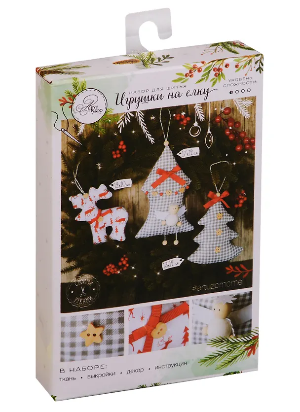 Набор для шитья Игрушки на елку Новогодние забавы (2346319) (12х10см/17х12см/13х12см) (3+) (коробка) (Арт Узор)