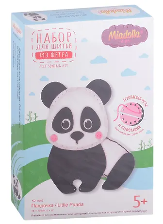 В наборе есть всё необходимое. Фетр средней толщины, без проблем шьётся даже ребенку. Результат очень красивый, панда милая.