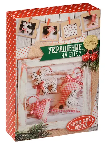 Набор для шитья Новогодние украшения на елку Домашний шарм (10,5 х16 х 2,5 см) (в наборе: ткань, аксессуары, палочка для набивки, выкройки, инструкция)