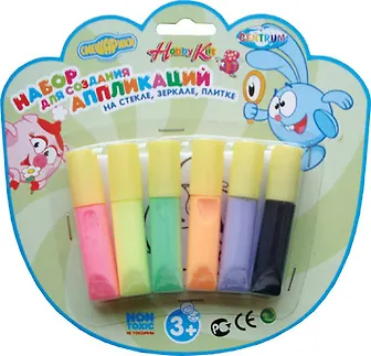 В набор входит шесть красок для создания аппликаций на стекле, зеркале, плитке. . .