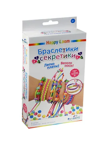 Набор для созд. браслетов Happy Loom Браслетики-секретики (01724) (4 веревочки+бисер) (6+) (коробка)