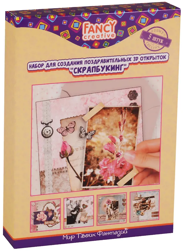 Набор для создания 3D открыток, Скрапбукинг Ретро 13*13см, 5шт, в картонной коробке