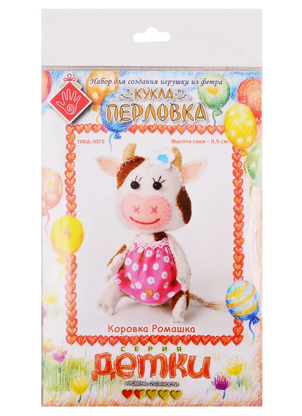 Набор для создания игрушки из фетра Коровка Ромашка (ПФД-1072) (высота стоя/11,5см) (Детки) (Перловка) (3+) (упаковка)