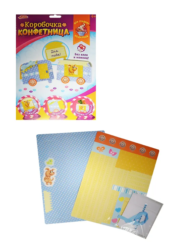 Вам не понадобятся клей и ножницы. Все элементы уже подобраны для вашего талантливого малыша, который будет с удовольствием создавать коробочку-конфетницу!