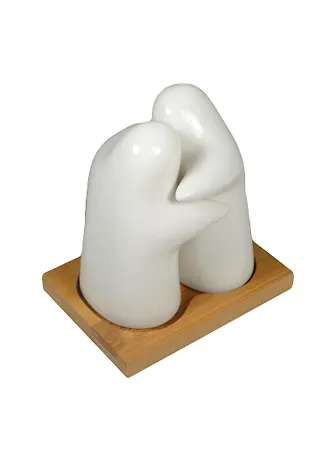 Забавный набор для специй, выполненный в виде двух обнимающихся человечков. Бамбуковая подставка.