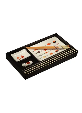 Набор для суши подарочный на 1 персону (соусник, блюдо, подставка д/палочек,салфетка, палочки) (31-212)