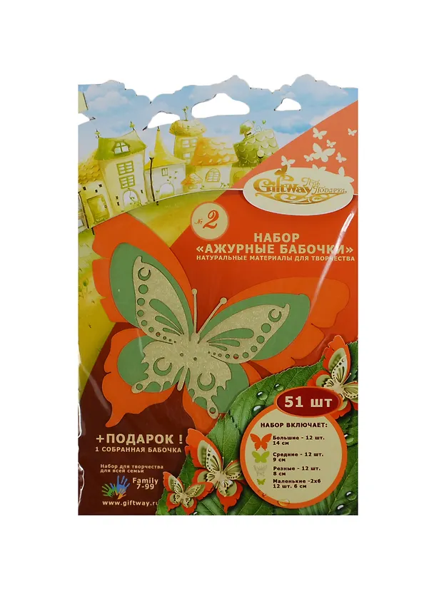 Набор для творчества для всей семьи - набор "Ажурные бабочки", 51 штука: Большие - 12 штук, 14 см; Средние - 12 штук, 9 см; Резные - 12 штук, 8 см, Маленькие - 2х6, 12 штук, 6 см.