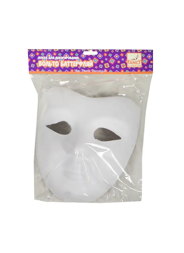 Белая картонная маска ВОЛЬТО БАТТЕРФЛЯЙ для росписи и украшения перьями, блестками, пайетками, сверкающими камнями и другими декорами, а также для декора в технике декупаж. Для надевания маски предусмотрена резинка. Хорошее решение для поделок на уроках труда. Прекрасный аксессуар для праздника - отлично дополнит карнавальный костюм.