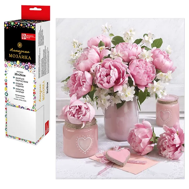 Набор для творчества. Алмазная мозаика "Пионовый букет", 20 х 25 см