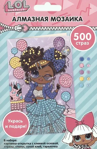 Набор для творчества LOL Surprise Алмазные открытки В комплекте: картинка 10х15 см (1 шт), стразы (500 шт, 5 цветов), тарелочка, стилус, сухой клей Материалы: картон, полимерные материалы. Не предназначено для детей до 3-х лет.