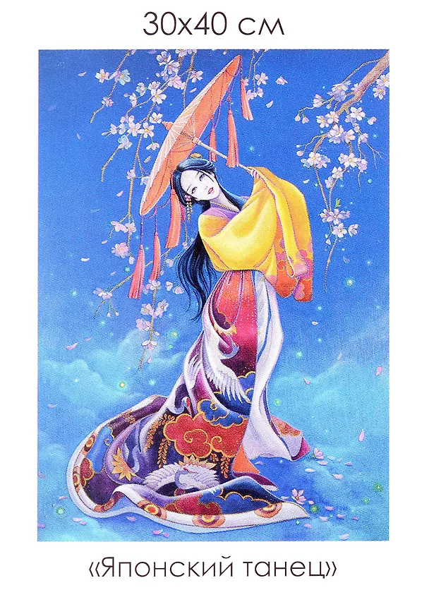 Алмазная мозаика "Японский танец". Стразы в наборе идут с запасом, поэтому не страшно если чуть-чуть потеряется-это, кстати, плюс. Ещё к плюсам отнесла качество страз, полотна, липкого слоя. Картина стоит таких денег. Ничего плохого сказать про набор не могу. А к хорошему хочу добавить быструю и качественную доставку. Набор стоит приобрести.