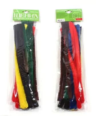 Декоративная цветная проволока Шенил (цветные ёршики) отлично гнется и режется обычными ножницами. Незаменимый материал для детских поделок. Если вы любите делать игрушки из помпонов, шенил вам очень поможет, так как из него легко сделать лапки, рожки, или просто силуэт нужной фигурки. Проволока очень мягкая и приятная в работе, ворсинки достаточно длинные и изделия получаются пушистыми. Из цветных ершиков вы легко сделаете лапки паучка, птичку или длинноногого страуса. Попробуйте пофантазировать и результат вас обязательно порадует!