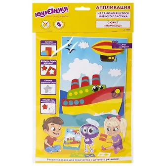 Аппликация интересная, ребенок пытался разобраться сам и немного запутался, переклеивал элементы, т.к. начал сразу мелкие кружки наклеивать на картон, а нужно было начинать с больших и сформировать пароход, волны, а потом уже украшать сам пароход. Непосредственно цветные элементы из фоамирана легко можно исправить и переклеить, если ошибся. Все детали в точности повторяют рисунок и ровно ложаться на картон, как итог, получается красивая картина, которую можно подарить, что мы и сделали.