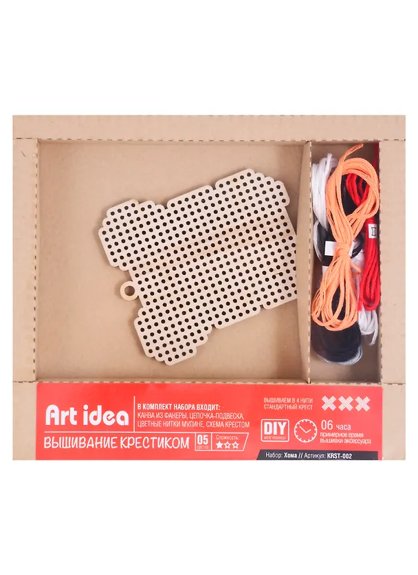 Набор не большой, пришел сильно измятый, но содержимое не пострадало. Деревянная дощечка - канва- из толстенькой фанеры, гладкая, без зазубрин. Ниток для вышивки достаточно. Брала для ребенка шести лет, чтобы познакомить с рукоделием. Ребенок легко справился с пластиковой иглой, получил море удовольствия и красивую подвеску в комнату. Жаль, что других подобных наборов нет на сайте.