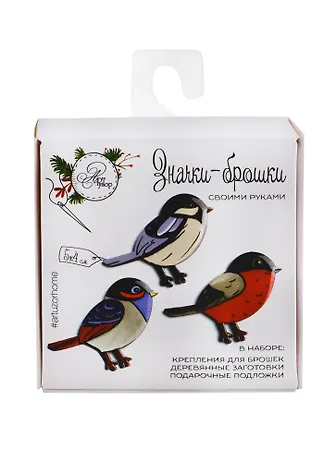 Набор для творчества, Арт Узор Брошь деревянная "Снегири", набор для создания, 8*8*1,5 см 2474232