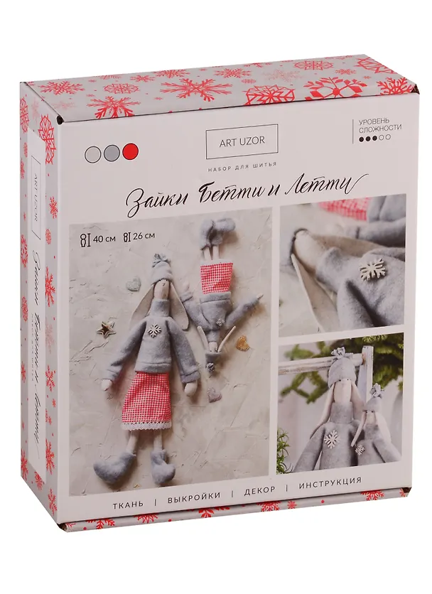Набор для творчества, Арт Узор Мягкие куклы Новогодние зайки Бетти и Летти», набор для шитья, 17*5*15см
