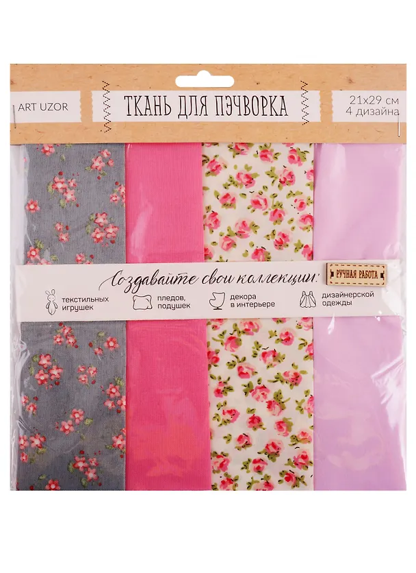 Набор (Да/нет) = Да; Цвет = Розовый; Цвет = Серый; Плотность материала = 120; Тематика изображения = Цветочно-растительная; Вид комплектующих для игрушек = Ткань; Ткань = Хлопковая ткань