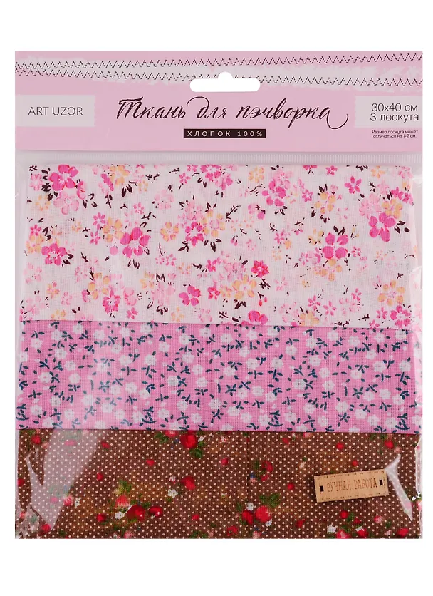 НТ Арт Узор Набор ткани для пэчворка (3 шт.) «Цветочная фантазия» 30*40см —это 3 хлопковых лоскутка ткани, которые идеально сочетаются между собой, цветовая гамма подобрана безукоризненно. Размер лоскутов — оптимальный — 30 х 40 см.