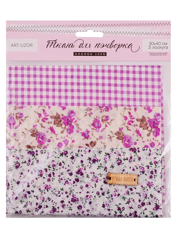 Набор для творчества, Арт Узор, Набор ткани для пэчворка (3 шт.) «Фантазия в лиловых тонах» 30*40см